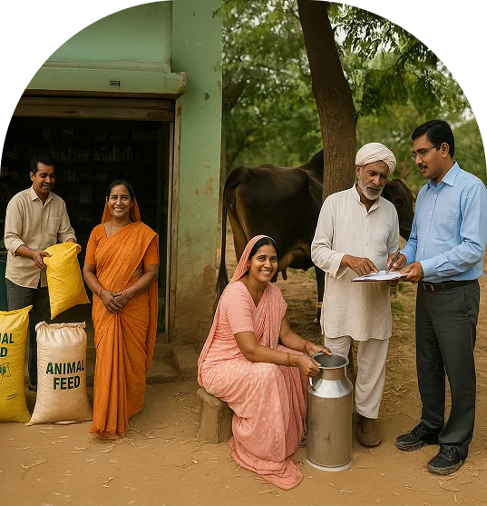 win-win ecosystem. From sachet-sized feed loans to multi-lakh infrastructure credit, our phygital model is inclusive, scalable and rooted in rural realities.